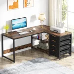 - Multi-functional L Shaped Desk: Brimming with industrial charm, brown veins panels and black frame, black drawer finish for a decorative touch, which can be blend with any scene of your home office. Served well as a computer table, home office desk, study table, writing desk or executive desk…